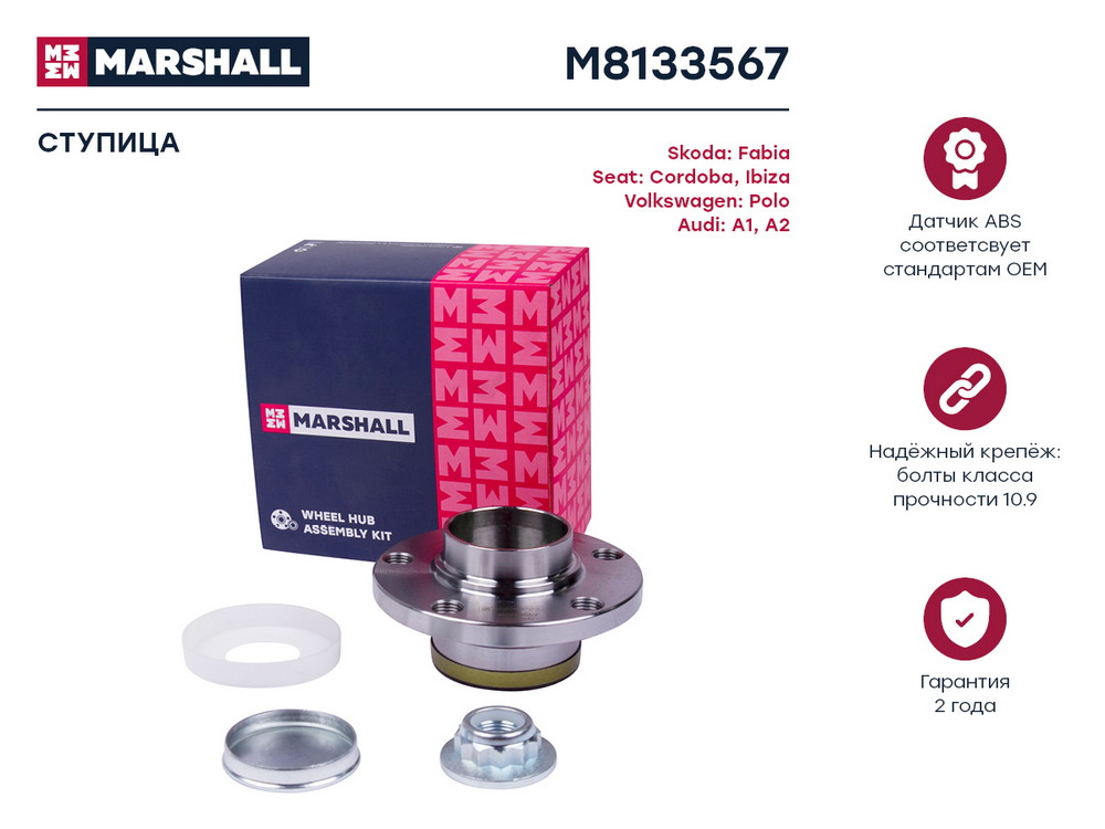M8133567 MARSHALL Ступица задн. Audi A1 8X 10- Seat Ibiza III IV 01- Skoda Fabia I-III 99- VW Polo