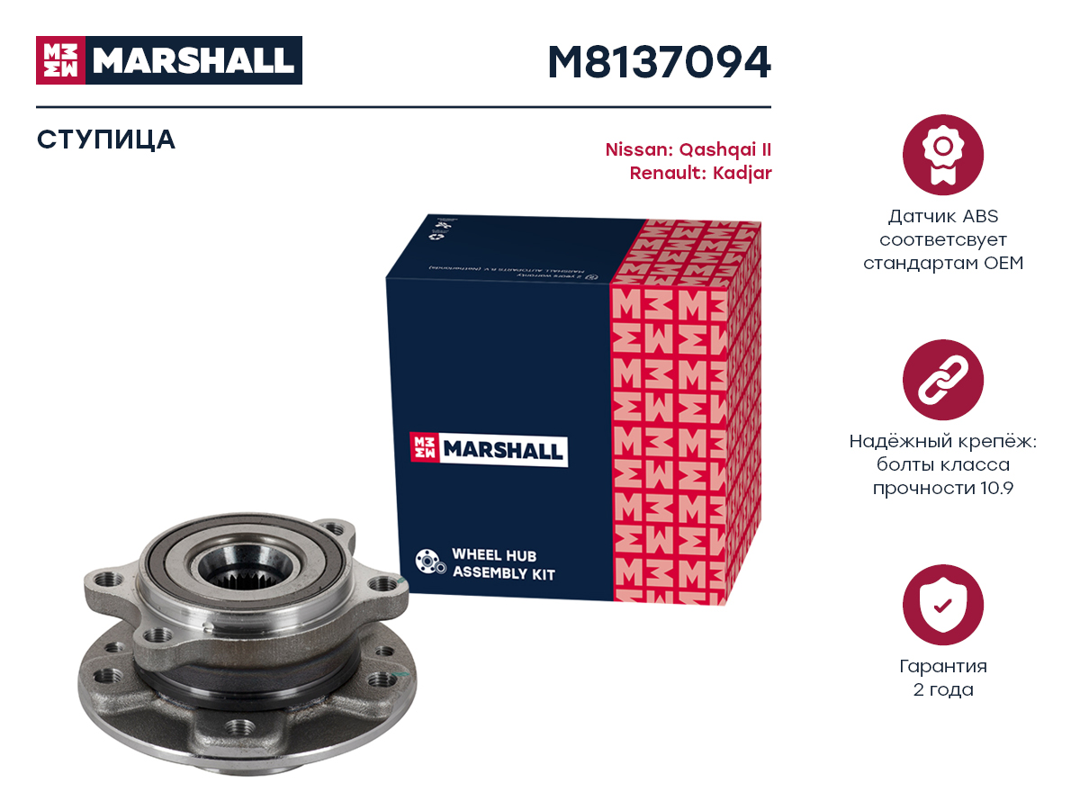 M8137094 MARSHALL Ступица передн. Nissan Qashqai II 13-, Renault Talisman 15- (M8137094)