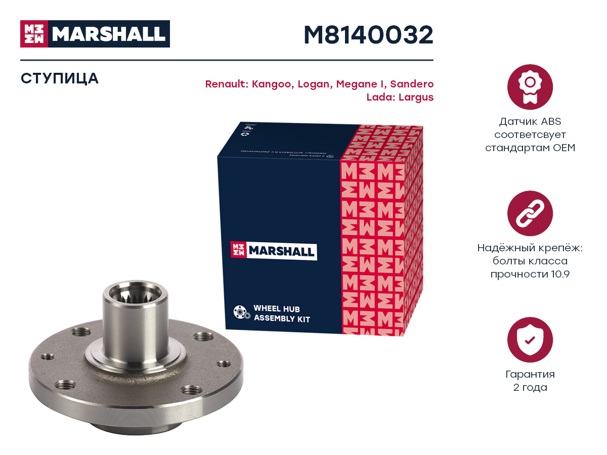 M8140032 MARSHALL Ступица передн. Renault Clio II-IV 98- Logan I II 04- Megane I II 95- Sandero