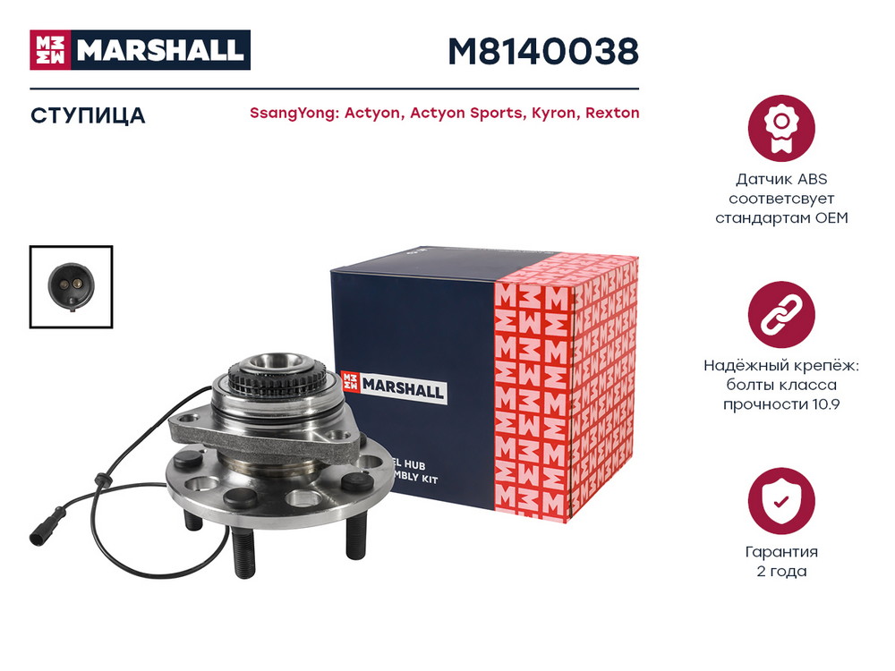 M8140038 MARSHALL Ступица передн. SsangYong Actyon I 05- Actyon Sports I II 06- Kyron 05- Rexto