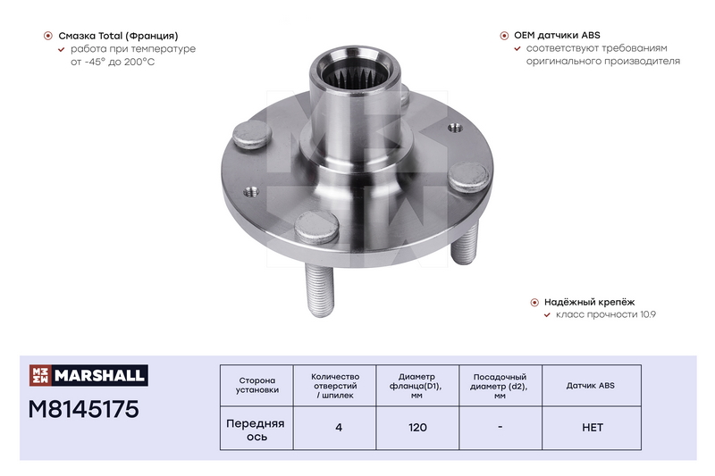 M8145175 MARSHALL Ступица передн. Hyundai Accent II 99- Getz 02- Kia Rio II 05- M8145175