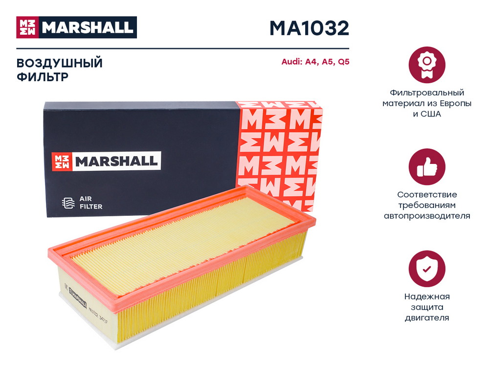 MA1032 MARSHALL Фильтр воздушный Audi A4 B8 07- A5 8T 07- Q5 8R 08- MA1032