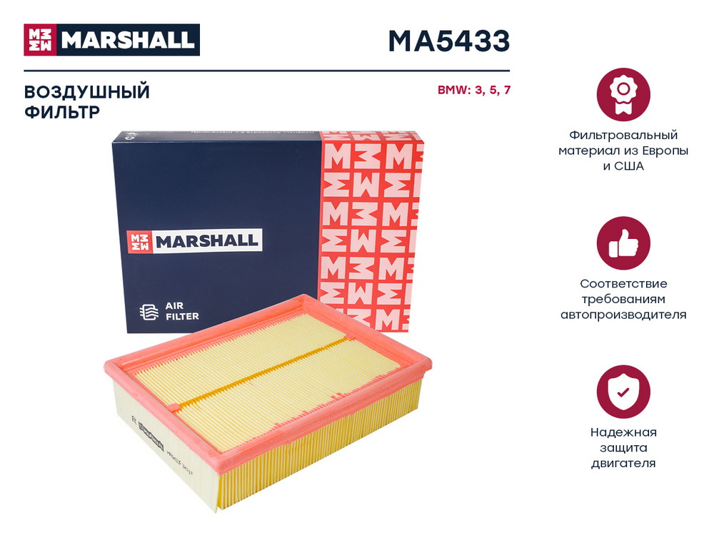 MA5433 MARSHALL Фильтр воздушный BMW 3 E36 E46 90- 5 E39 95- 7 E38 95- MA5433