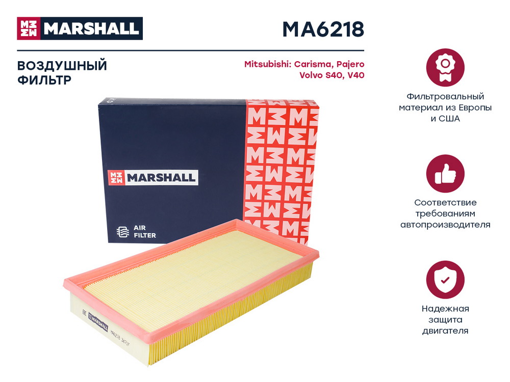 MA6218 MARSHALL Фильтр воздушный Mitsubishi Carisma 95- Pajero II 98- Volvo S40 I 95- V40 I 95