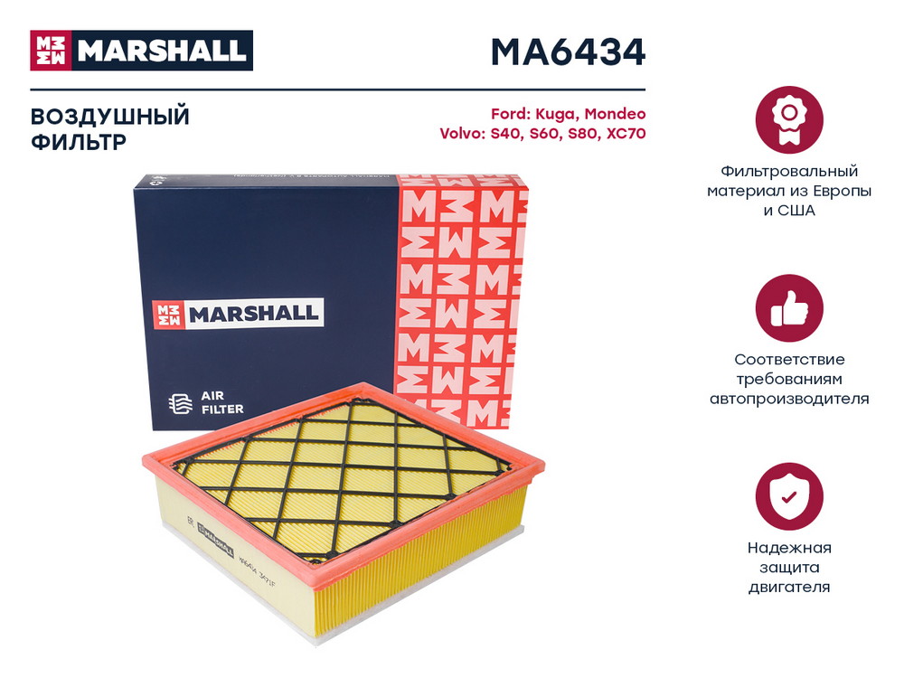 MA6434 MARSHALL Фильтр воздушный Ford Kuga I 08- Mondeo IV 07- Volvo S40 II 04- S60 II 11- S8