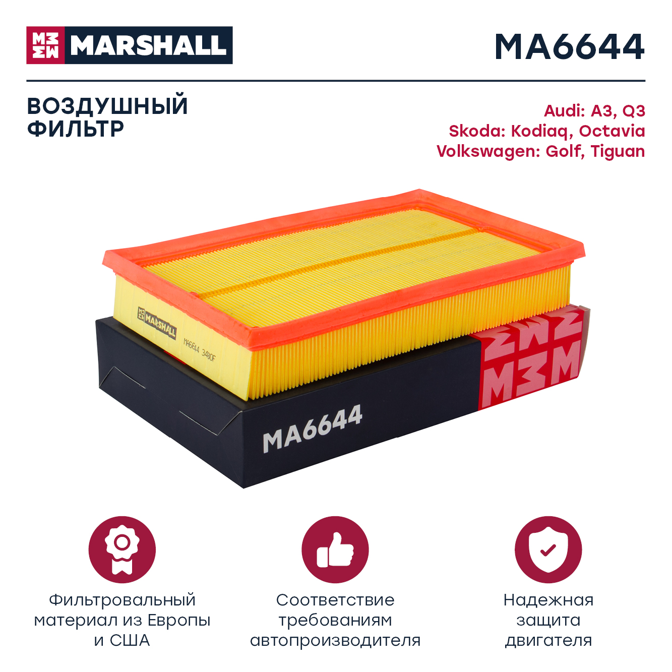 MA6644 MARSHALL Фильтр воздушный 1.0 1.5 TSI Audi Q3 F3 18- Skoda Octavia III A7 17- VW Jetta VI