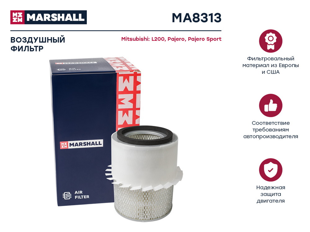MA8313 MARSHALL Фильтр воздушный Mitsubishi L200 III 96- Pajero II III 91- Pajero Sport I 99-