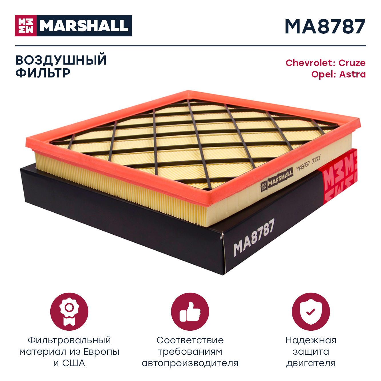 MA8787 MARSHALL Фильтр воздушный Chevrolet Cruze I 09- Orlando I 11- Opel Astra J 09- Zotye T60