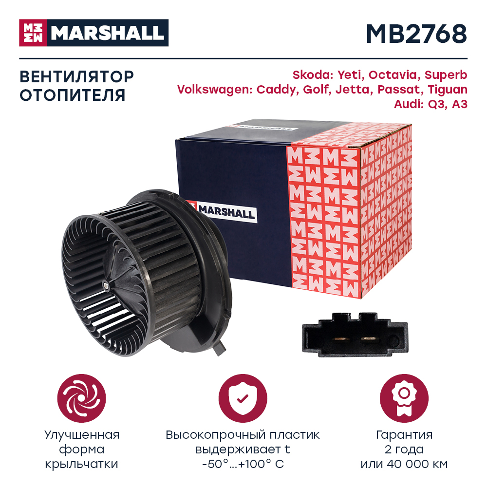 MB2768 MARSHALL Эл. вентилятор отоп. Skoda Octavia II A5 04- VW Golf V VI 03- Passat B6 05- Ti