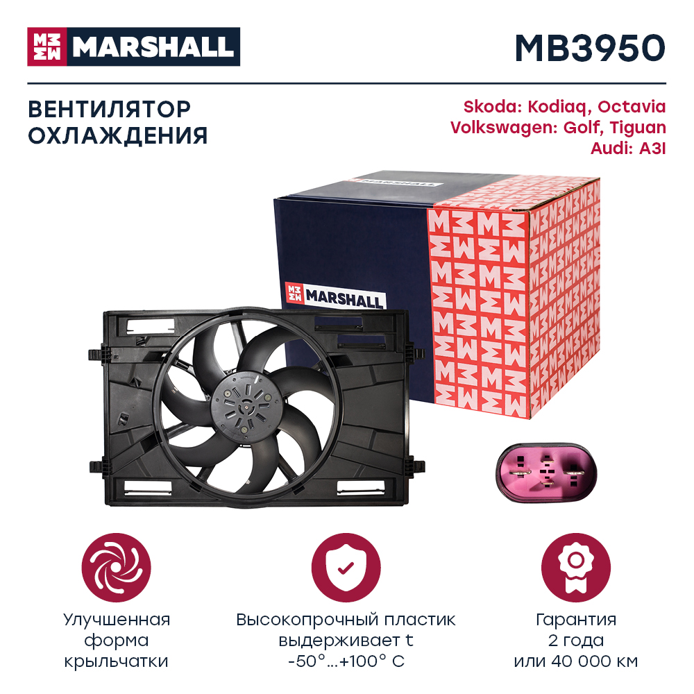 MB3950 MARSHALL Эл. вентилятор охл. Skoda Kodiaq I 16- Octavia III A7 IV A8 13- VW Golf VII 12-