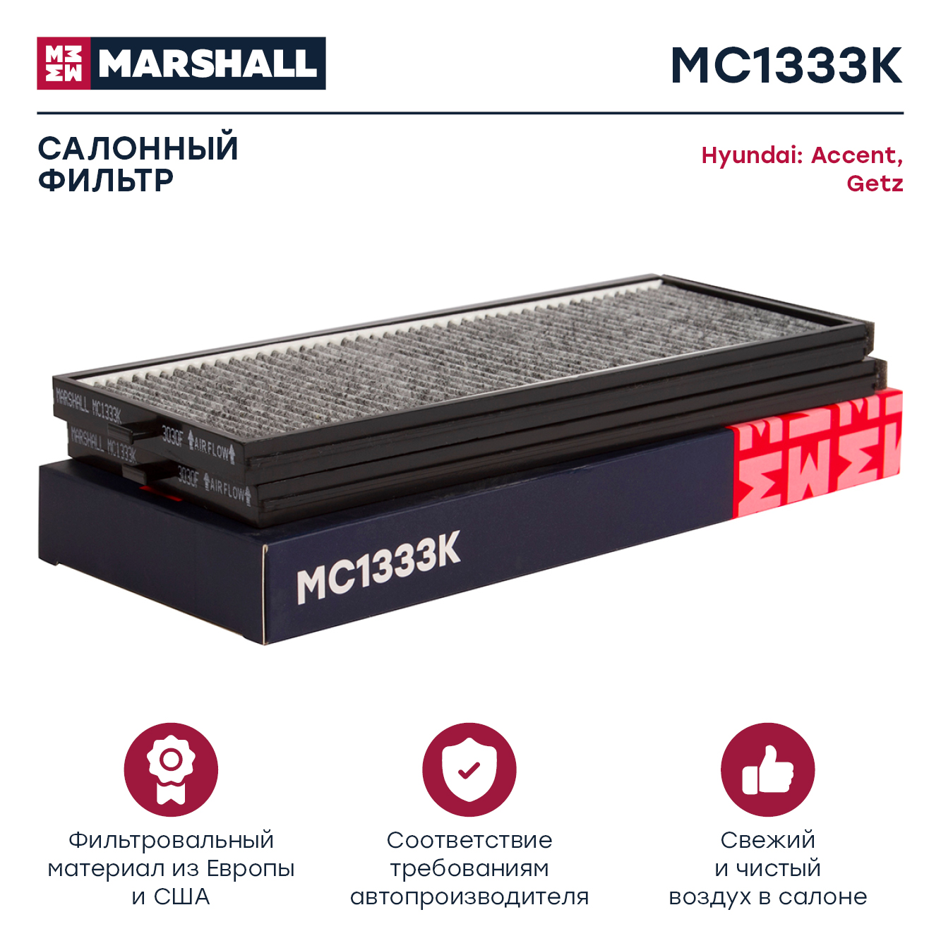 MC1333K MARSHALL Фильтр салонный угольный Hyundai Accent II 00- Getz 02- MC1333K