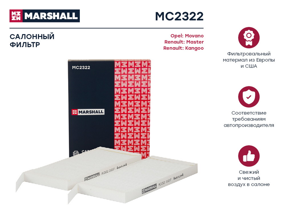 MC2322 MARSHALL Фильтр салонный Opel Movano B 10- Renault Master III 10- Kangoo II 08- MC2322