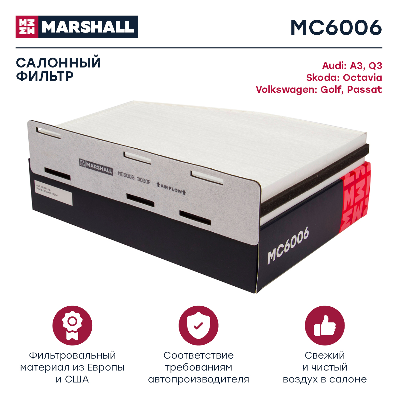 MC6006 MARSHALL Фильтр салонный Audi A3 8P 03- Q3 8U 11- Skoda Octavia II A5 04- Yeti 09- VW T
