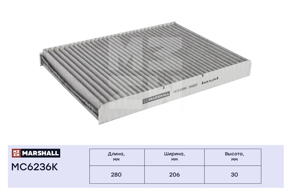 MC6236K MARSHALL Фильтр салонный угольный Audi A3 8L 96- Skoda Octavia I A4 96- VW Golf IV 97- V
