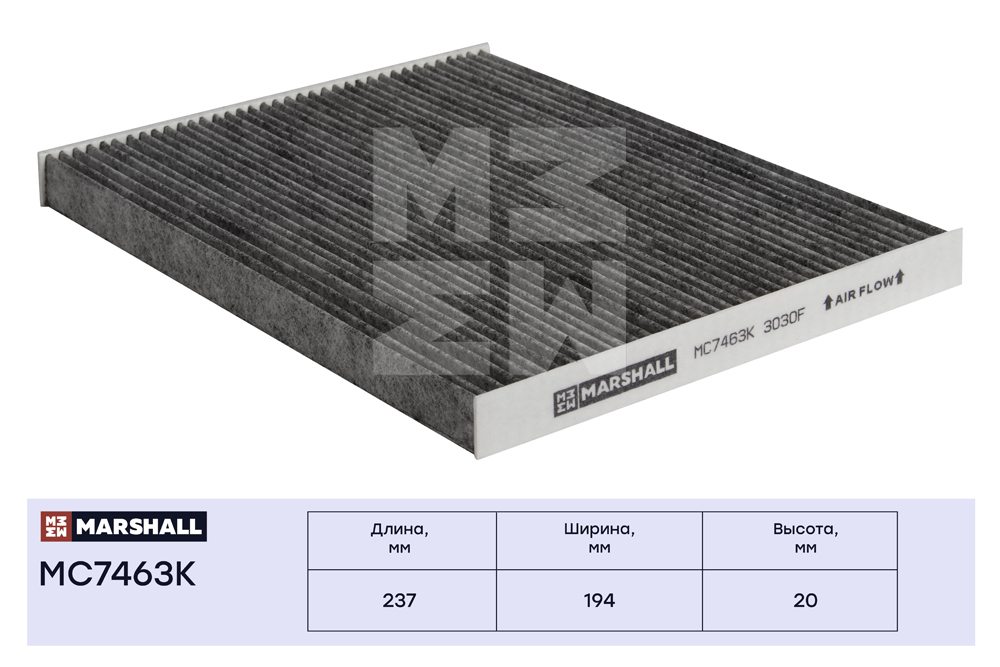 MC7463K MARSHALL Фильтр салонный угольный Hyundai ix35 10- Tucson I 04- Kia Sportage II III 04-