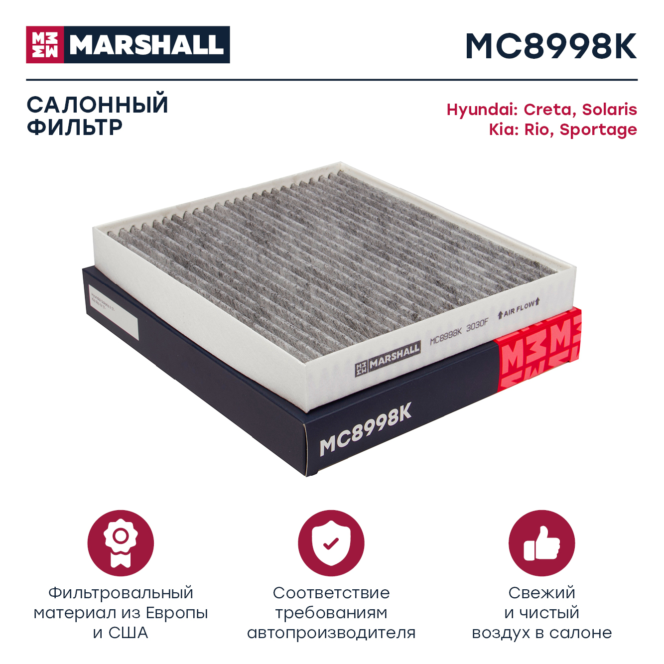 MC8998K MARSHALL Фильтр салонный угольный Hyundai Creta I II 16- Solaris II 17- Kia Rio IV 17-