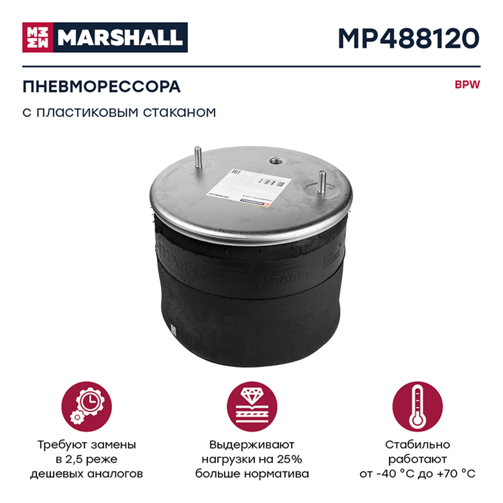 MP488120 MARSHALL пневмоподушка со стаканом! 2шп. M12 смещ.25 1отв. штуц. M22 порш. пласт. 12отв.