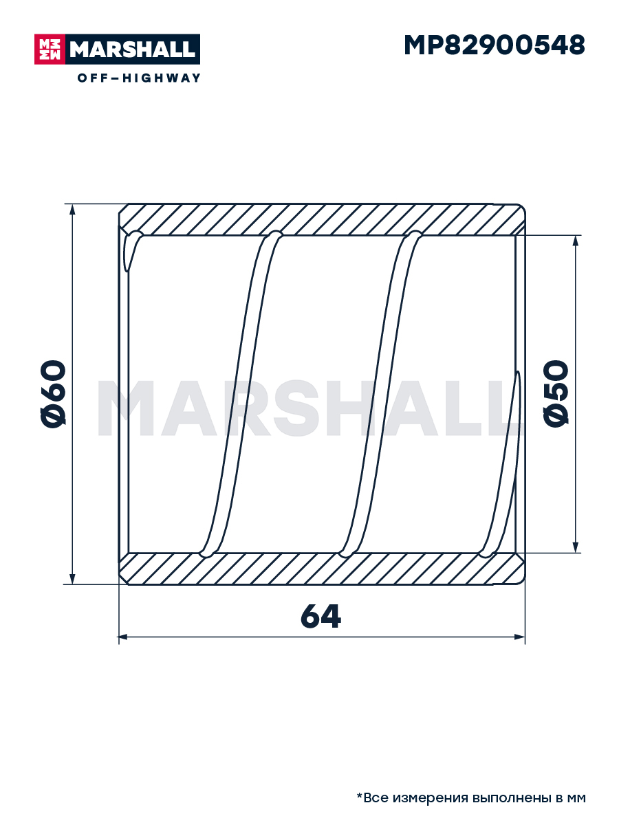 MP82900548 MARSHALL Втулка JCB пальца переднего моста металлическая (50х60х63.8мм) MARSHALL