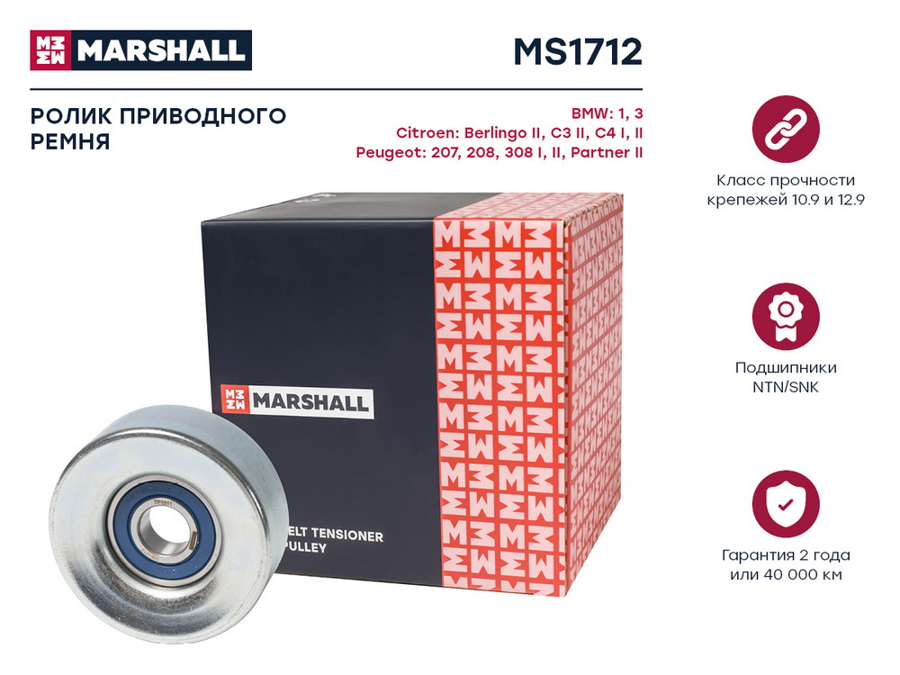 MS1712 MARSHALL Ролик прив. ремня Citroen Berlingo II 09- C4 I II 08- Peugeot 207 06- 208 12-