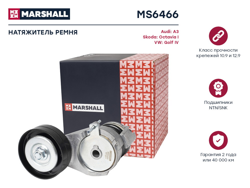 MS6466 MARSHALL Натяжитель прив. ремня Audi A3 8L 8P 96- Skoda Octavia I A4 96- VW Golf IV 97- M