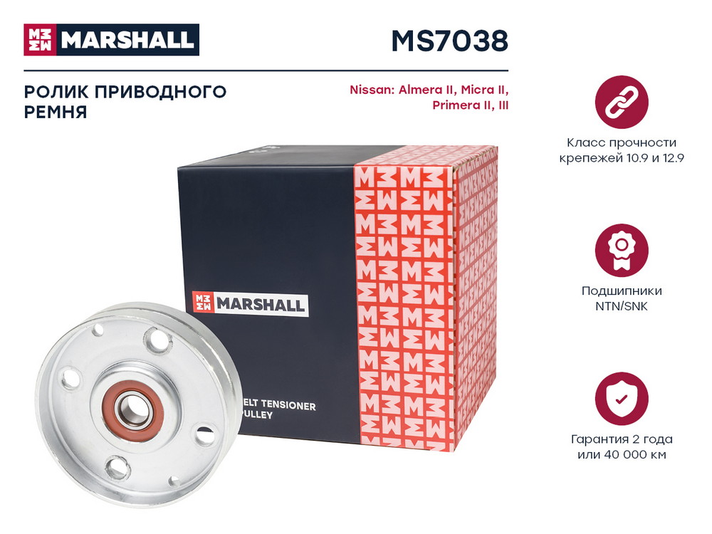 MS7038 MARSHALL Ролик прив. ремня Nissan Almera II N16 00- Micra II 92- Primera II P11 III P12