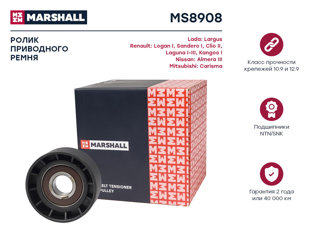 MS8908 MARSHALL Ролик прив. ремня Lada Largus 12- Renault Logan I 04- Sandero I 09- Clio II 98