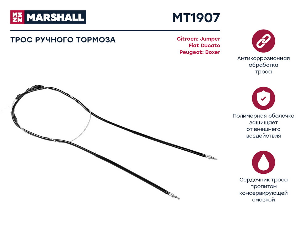 MT1907 MARSHALL Трос тормоза стояночного Citroen Jumper I 02- Fiat Ducato II 94- Peugeot Boxer I