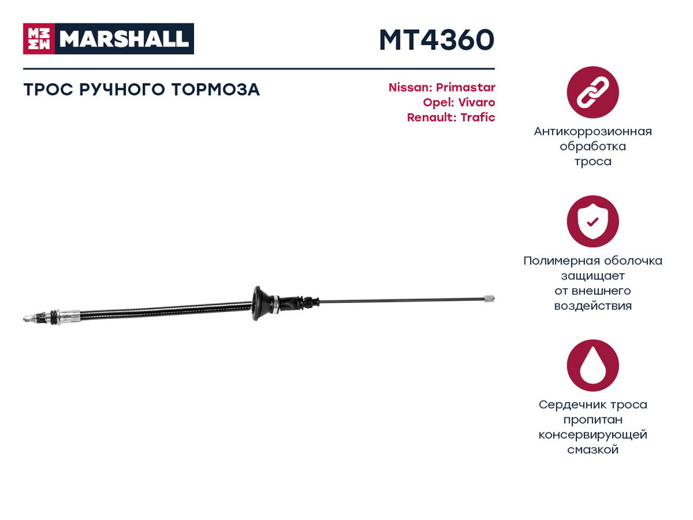MT4360 MARSHALL трос ручника передний!\ Renault Trafic all 01>