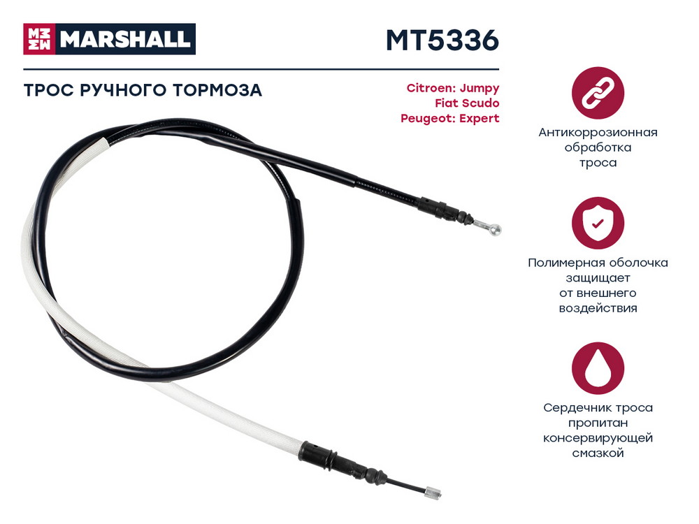MT5336 MARSHALL Трос тормоза стояночного Citroen Jumpy II 07- Fiat Scudo II 07- Peugeot Expert 0