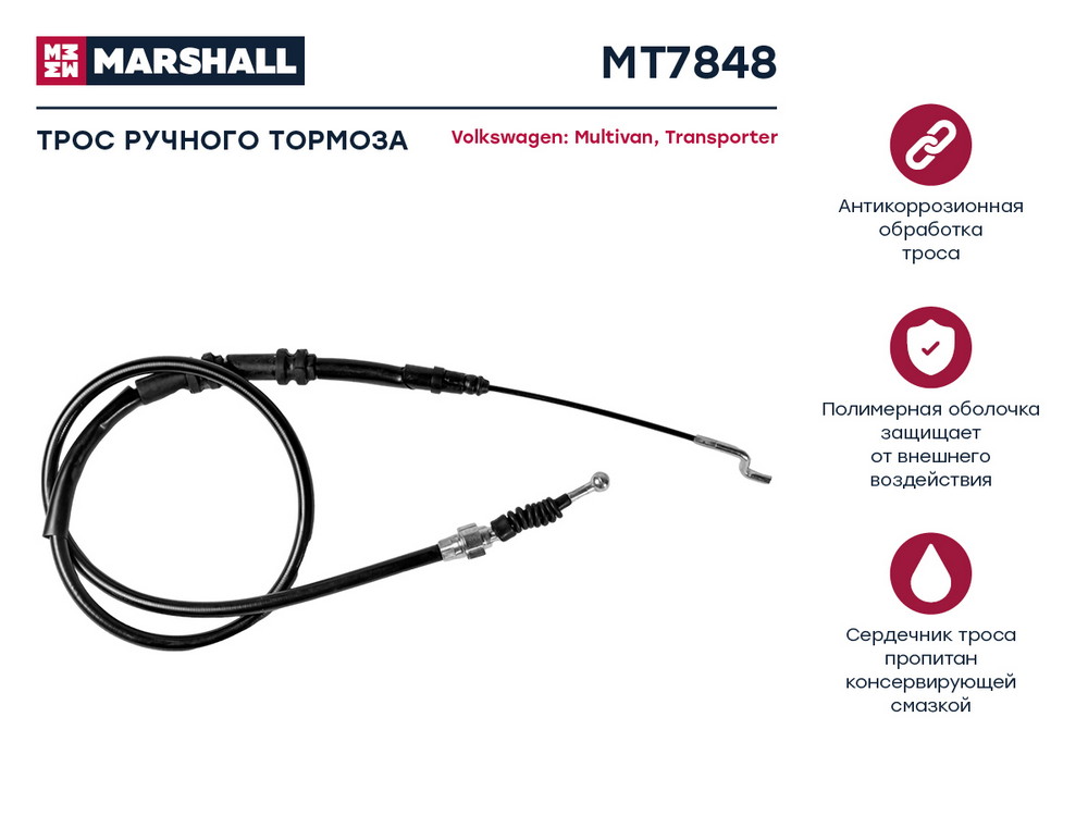 MT7848 MARSHALL Трос тормоза стояночного VW Multivan V VI 03- VW Transporter V VI 03- MT7848