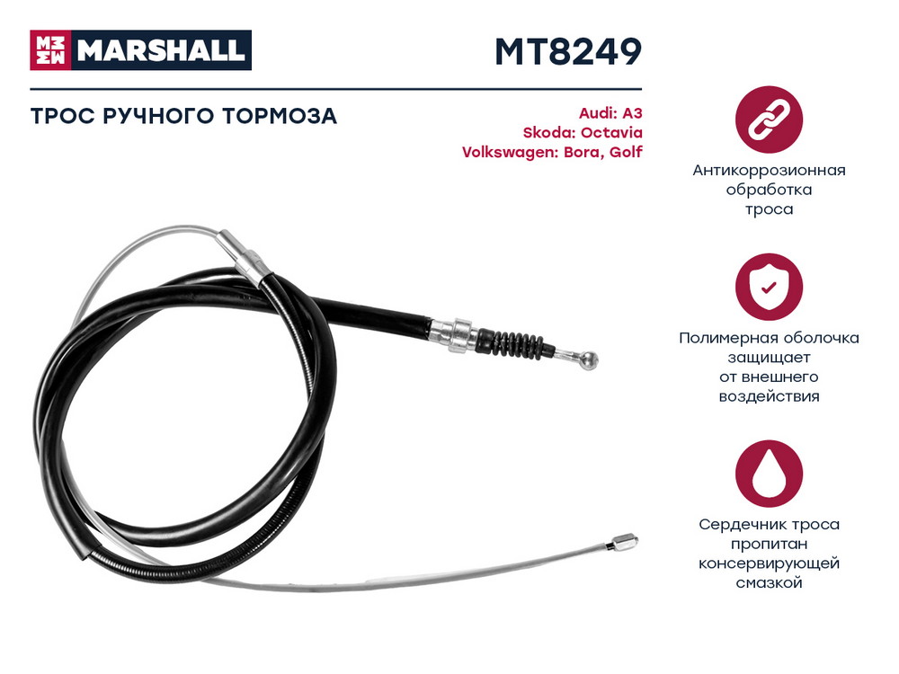 MT8249 MARSHALL Трос тормоза стояночного Audi A3 8L 96- Skoda Octavia I A4 96- VW Bora 98- Golf