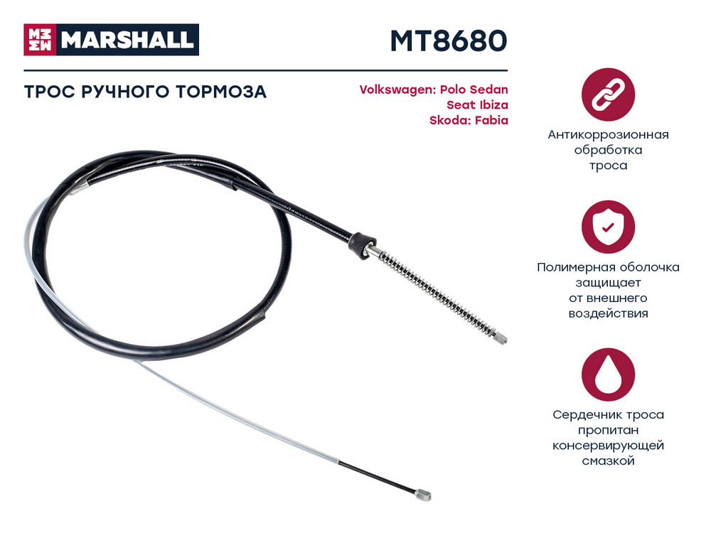 MT8680 MARSHALL Трос тормоза стояночного VW Polo Sedan I 09- Seat Ibiza V 08- Skoda Fabia III 14
