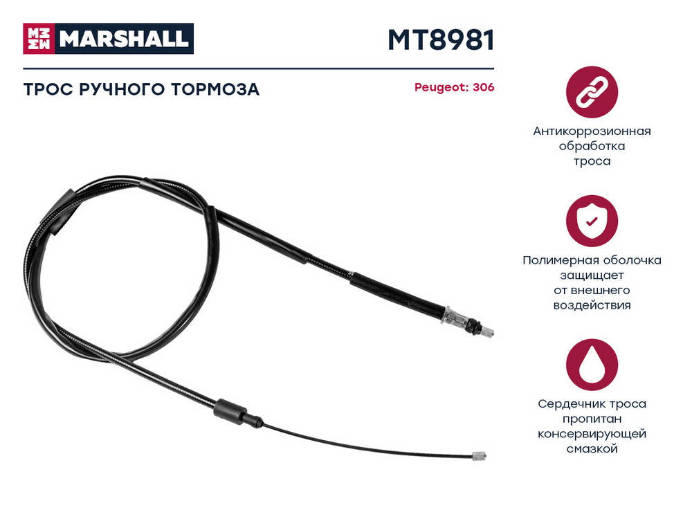 MT8981 MARSHALL Трос тормоза стояночного Peugeot 306 94- (MT8981)