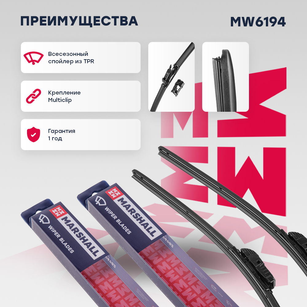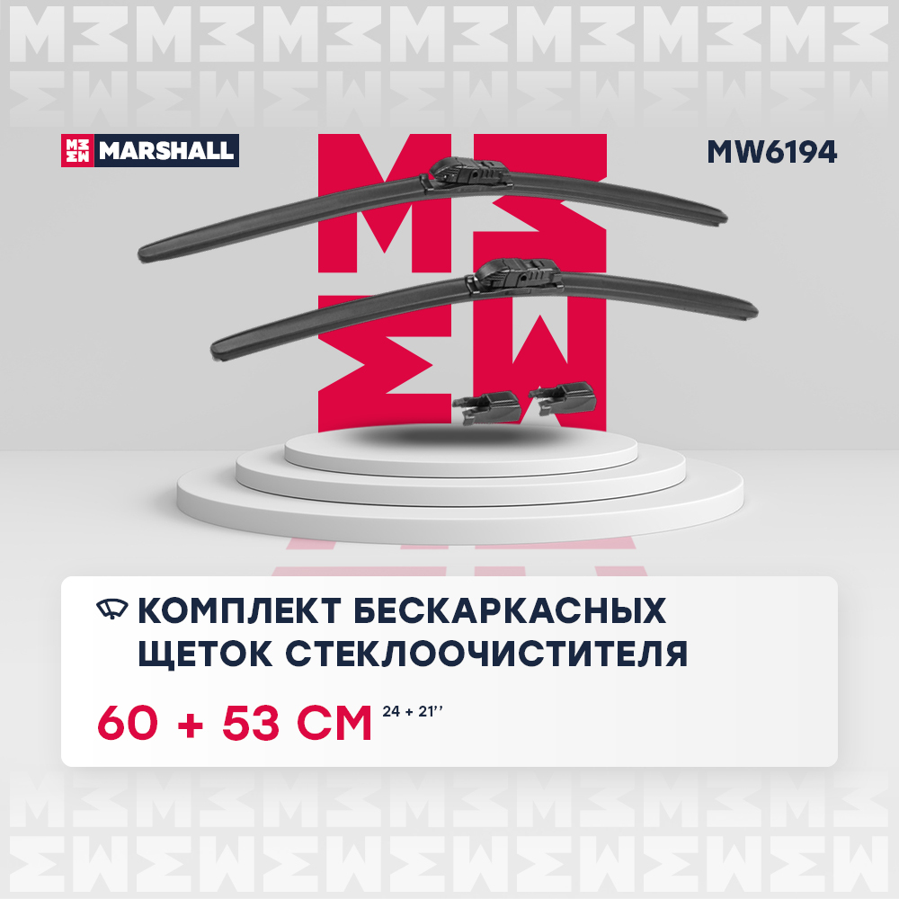 MW6194 MARSHALL Комплект бескаркасных щеток стеклоочистителя 24” 60 см + 21” 53 см hook side