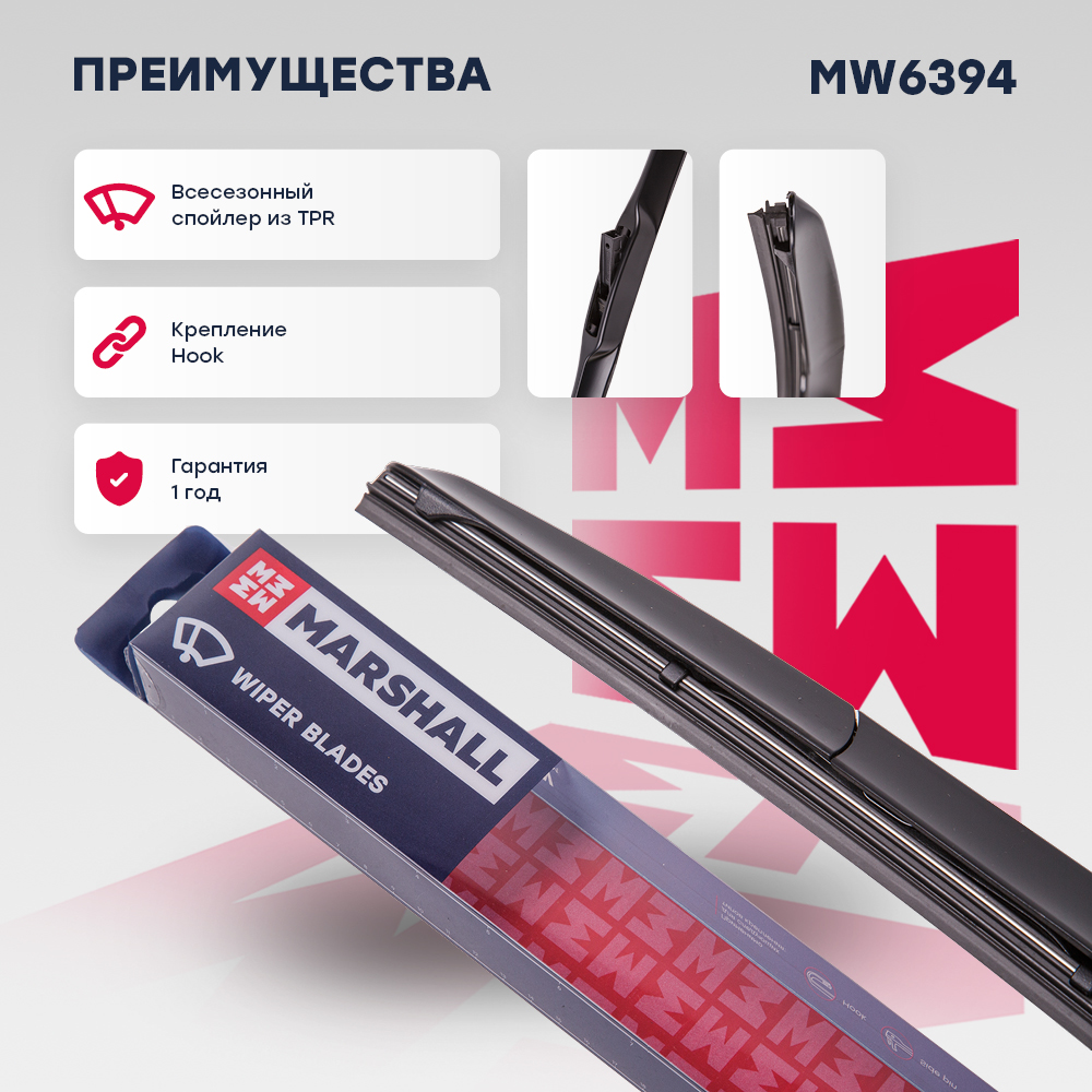 MW6394 MARSHALL Гибридная щетка стеклоочистителя 19” 48 см hook 19 mm MW6394