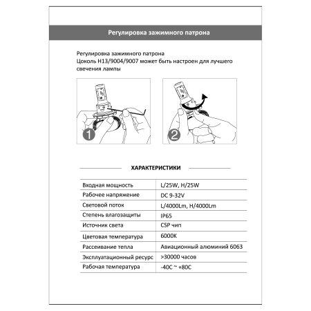 | Наименование | лампы светодиодные! к-кт 2шт HB4 6000K 4000Lm P22d\ |