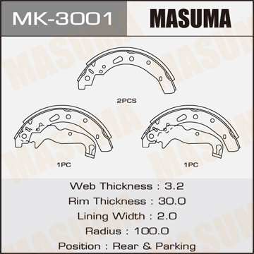 MK3001 MASUMA колодки тормозные барабанные!\ Ford Fiesta 1.25-1.6i/1.4-1.6TDCi, Mazda 2 1.3-1.