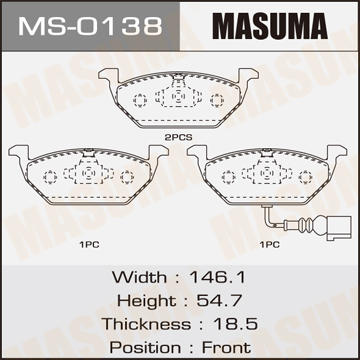 MS0138 MASUMA колодки дисковые передние!\ Audi A2 1.4i/1.6FSi/1.4TDi 00>, Skoda Fabia 1.4i/1.9