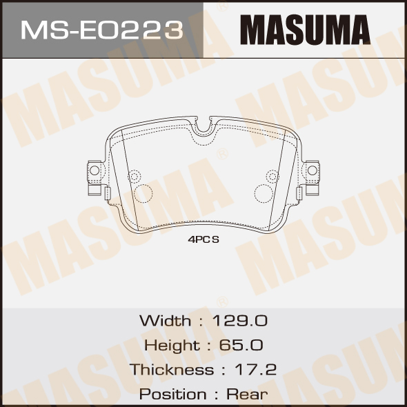 MS-E0223 MASUMA колодки дисковые задние!\ Audi Q7 3.0TDi/4.2i 06>, Porsche Cayenne 4.5i 02>