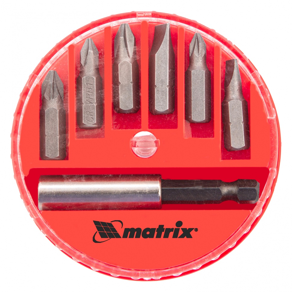 | Наименование | Набор бит 1/4" PH,PZ,SL с держателем магнитным 7 предметов в боксе MATRIX |