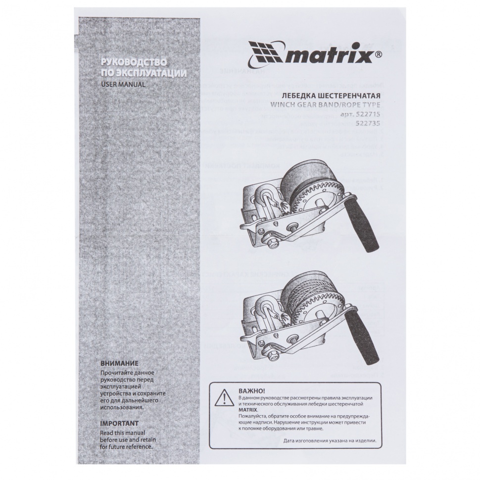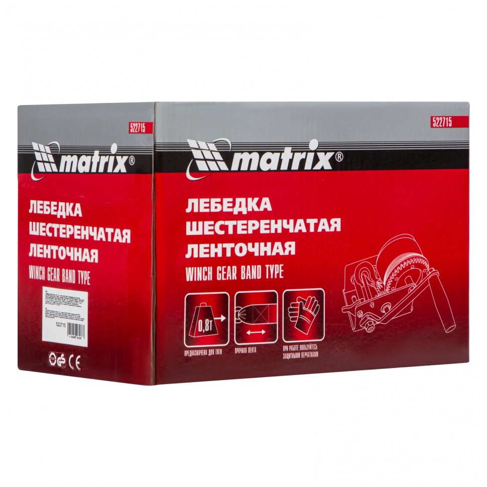 | Наименование | Лебедка барабанная 0.8т L=7.5м ленточная MATRIX |