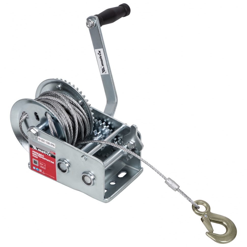 Лебедка барабанная 0.8т L=9м тросовая MATRIX