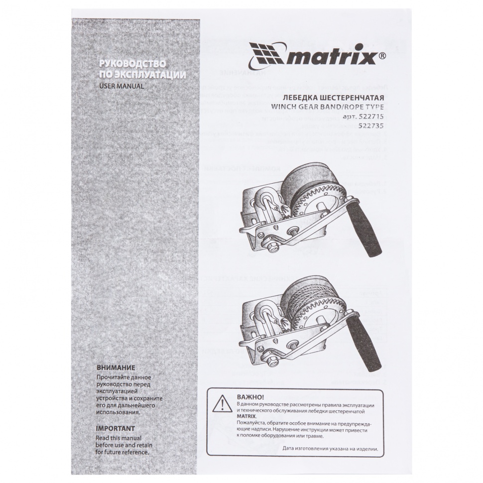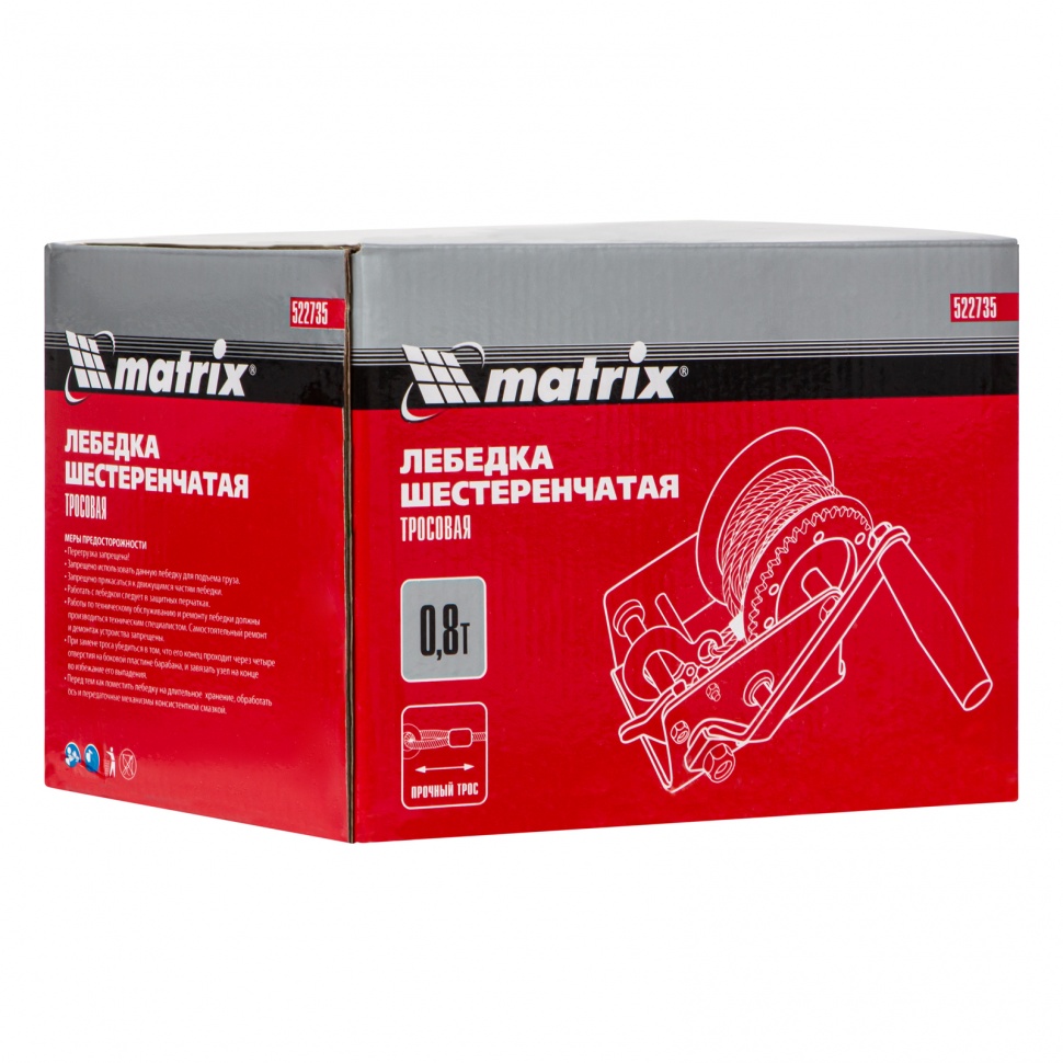 522735 MATRIX Лебедка барабанная 0.8т L=9м тросовая MATRIX