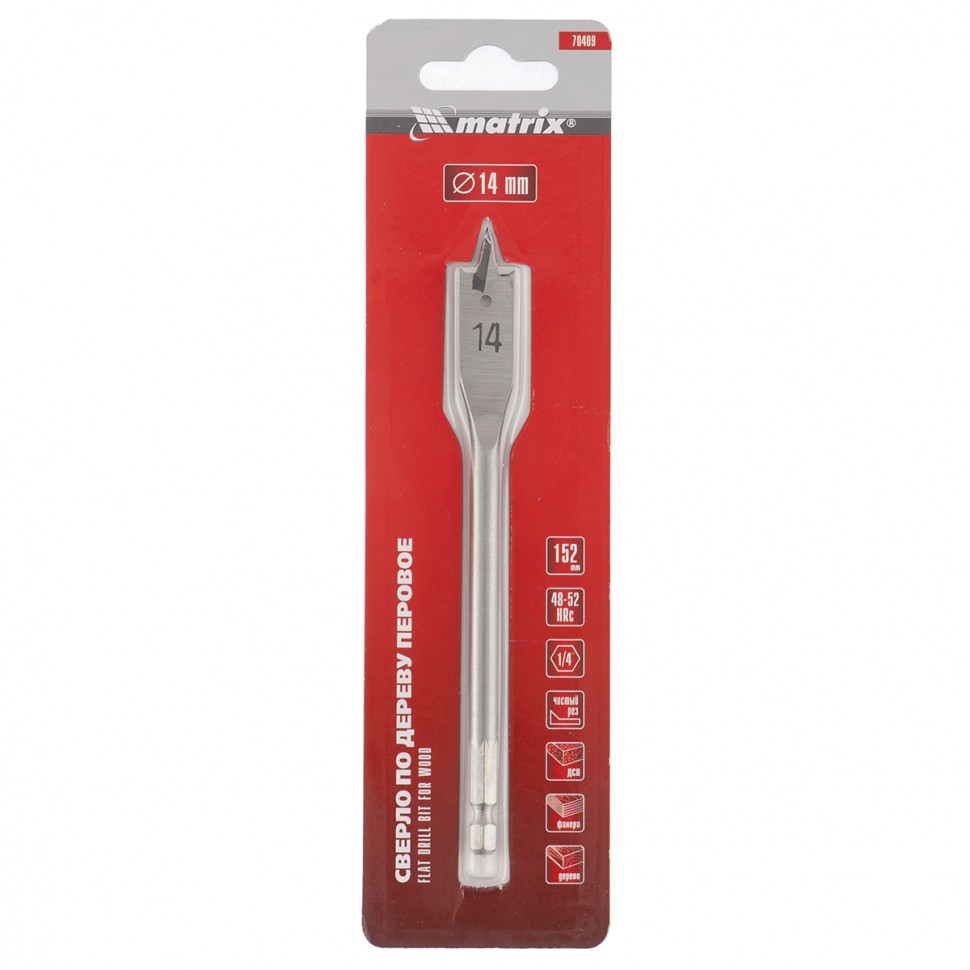 70409 MATRIX Сверло по дереву перьевое 14.0х152мм 6-гранный хвостовик MATRIX