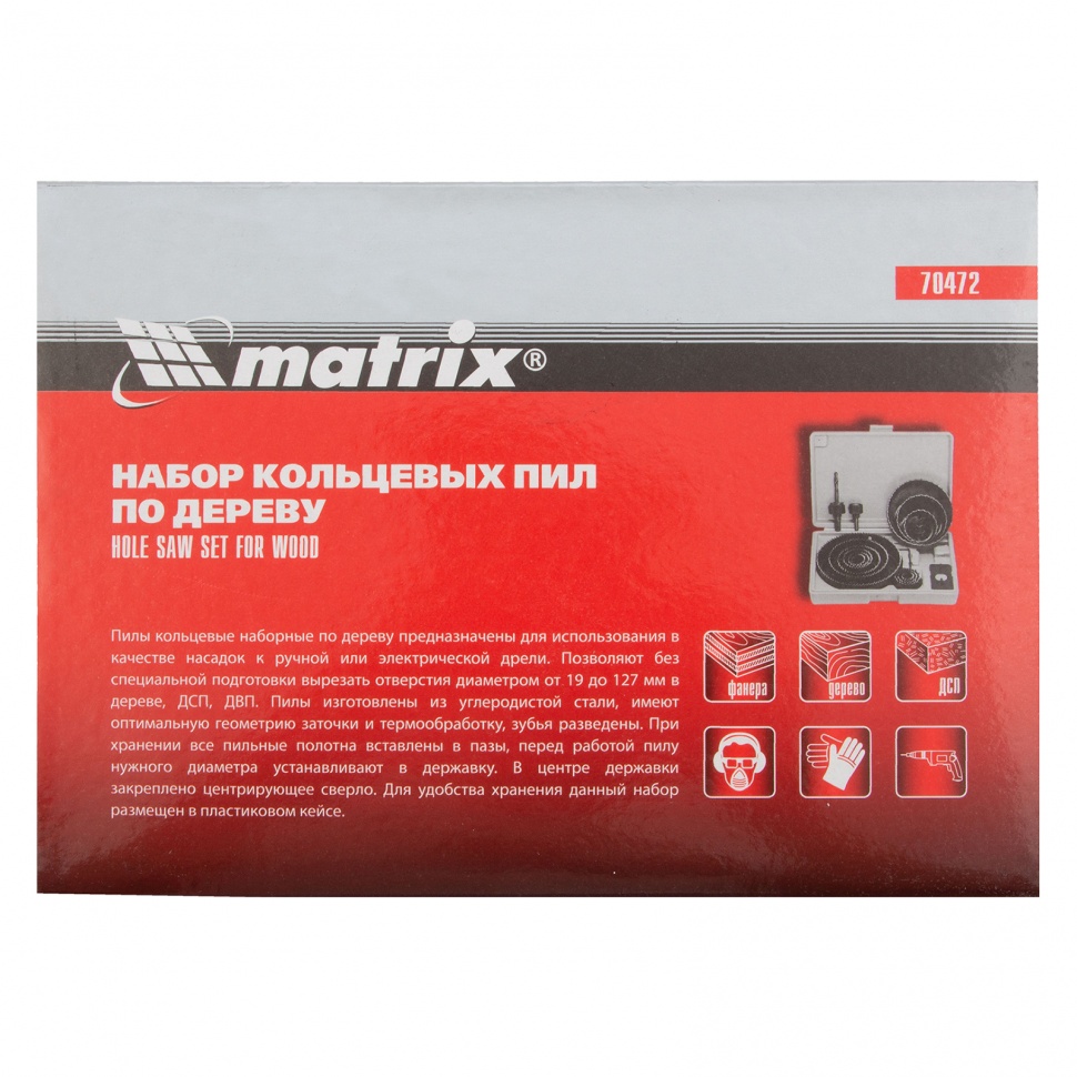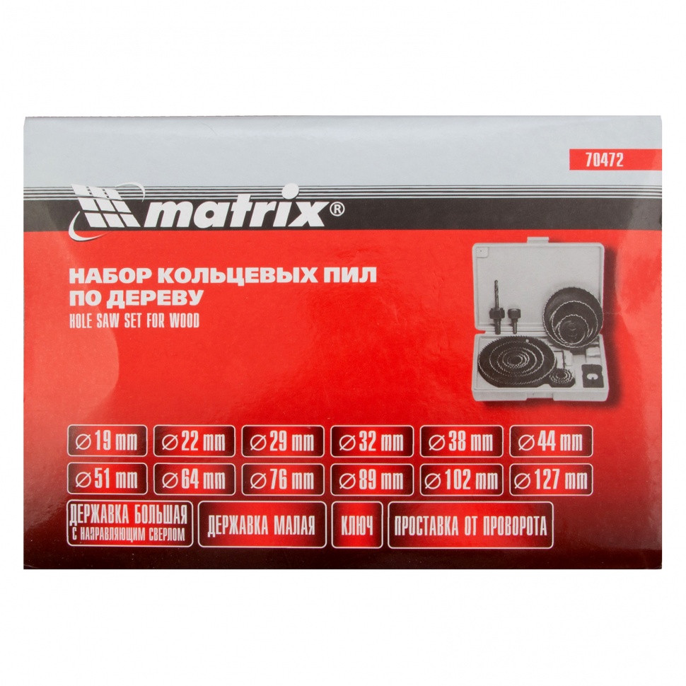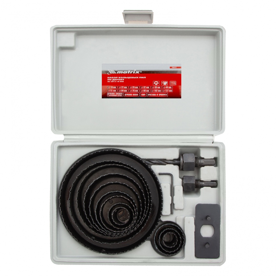 | Наименование | Коронка набор 12 венцов 19-127мм (кейс) MATRIX |