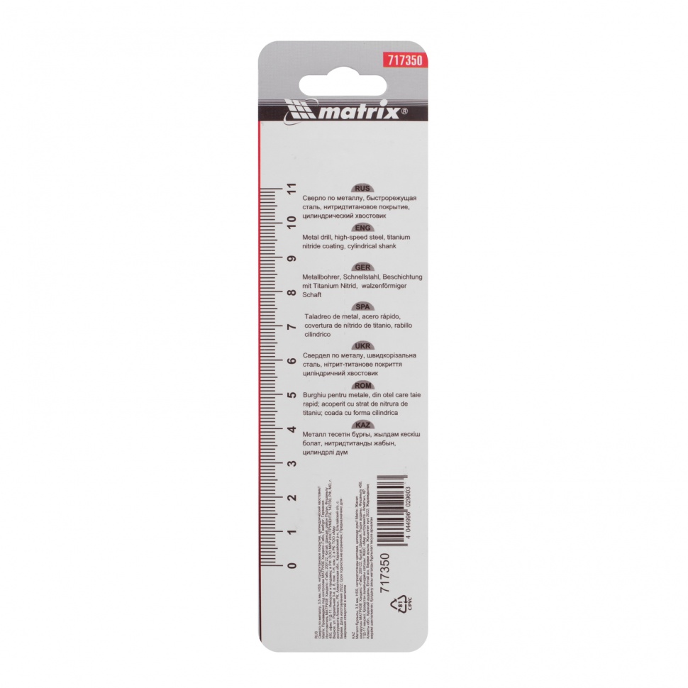 | Наименование | Сверло по металлу 3.5х70мм HSS Titanium MATRIX |