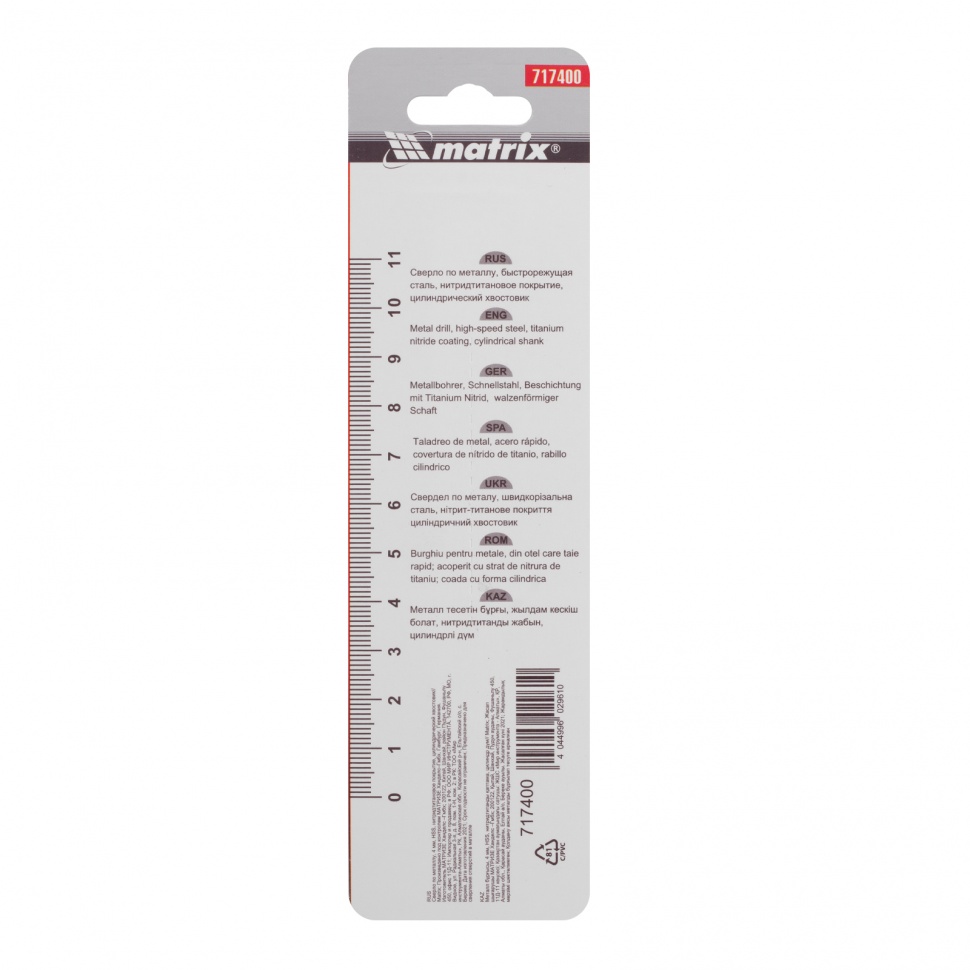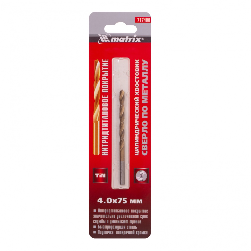 | Наименование | Сверло по металлу 4.0х75мм HSS Titanium MATRIX |