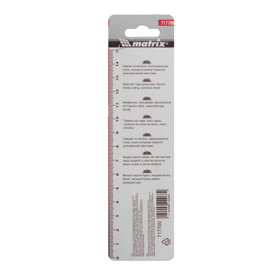 | Наименование | Сверло по металлу 7.0х109мм HSS Titanium MATRIX |