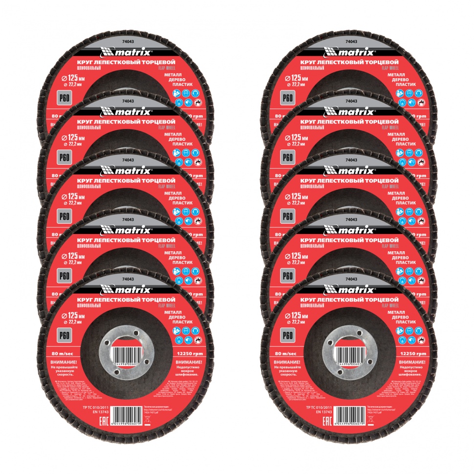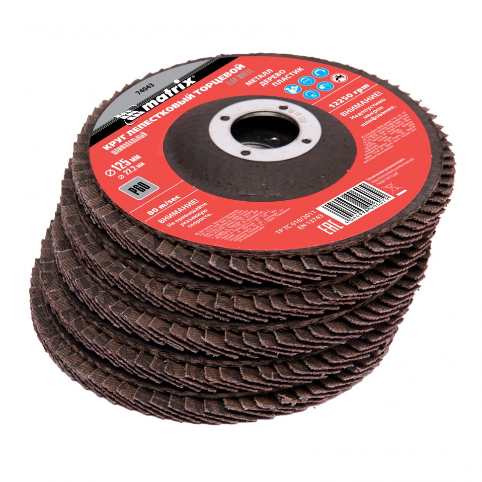 74043 MATRIX Круг лепестковый торцевой 125х22мм Р60 MATRIX