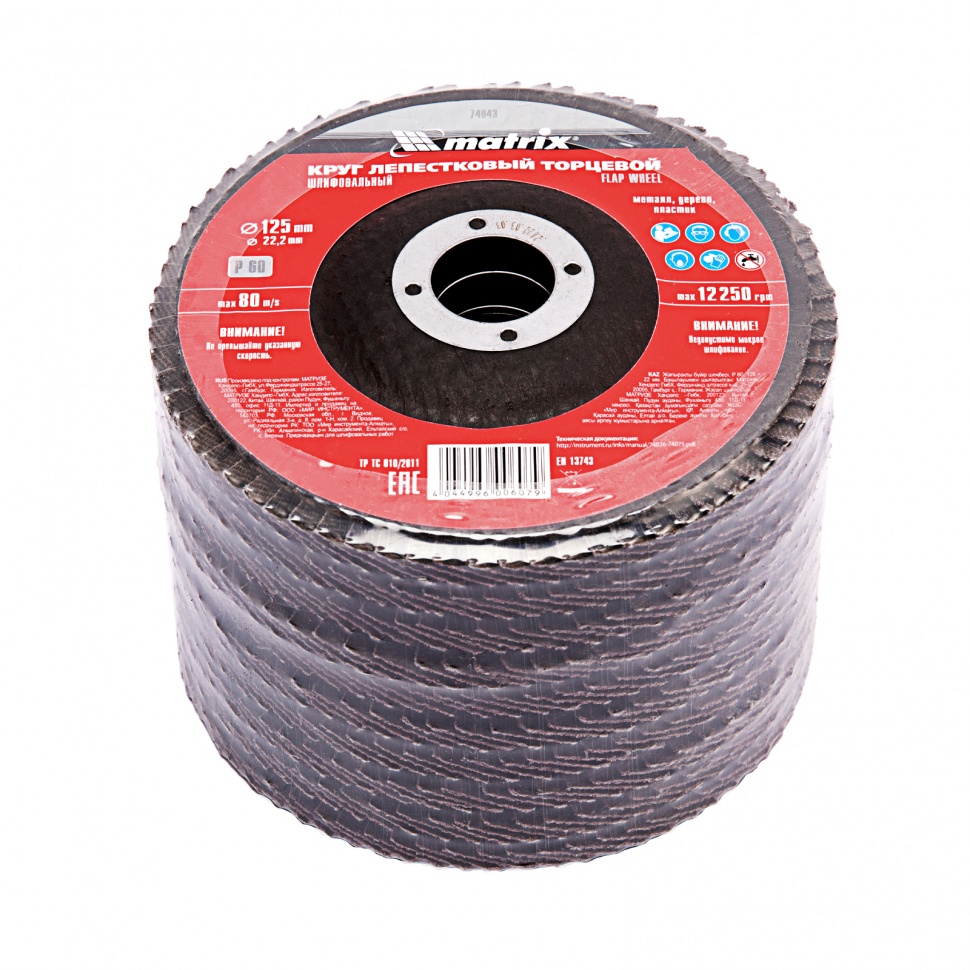 | Наименование | Круг лепестковый торцевой 125х22мм Р60 MATRIX |